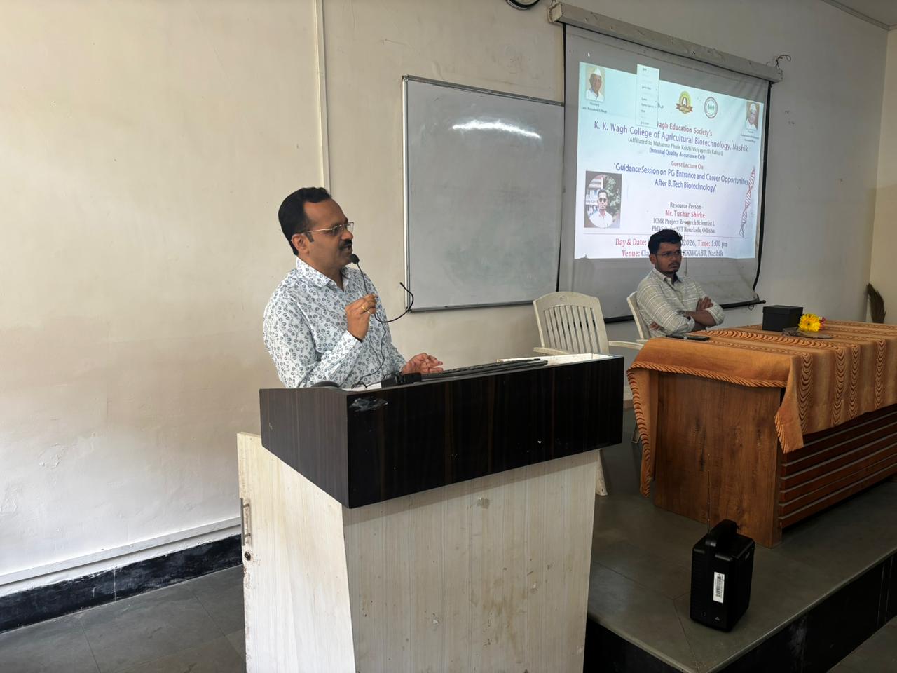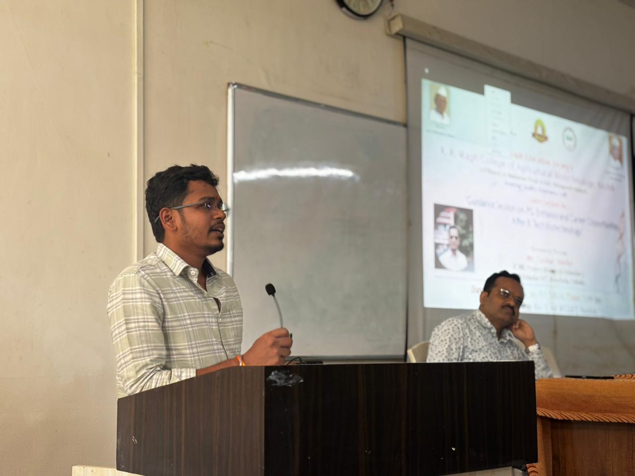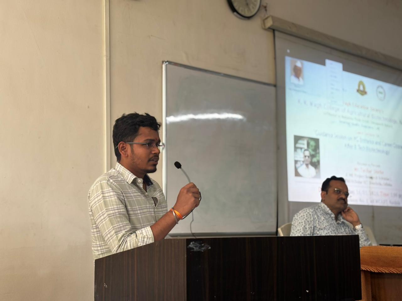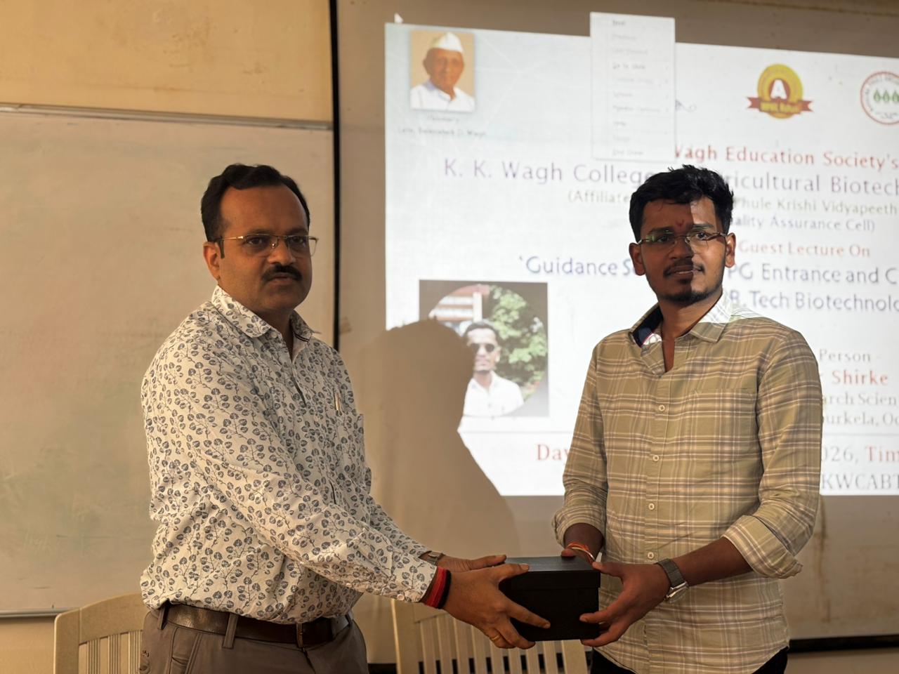 Alumni Talk of Alumni "(Mr. Tushar Shirke (Ph.D. Scholar NIT Rourkela, Odisha and ICMR Scientist)organized by K. K. Wagh College of Agril. Biotech on Dt. 16/01/2026.